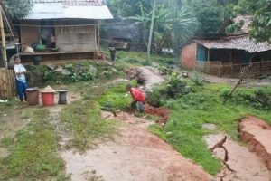 Kejadian ini memgakibatkan kerusakan fisik bangunan rumah dan insfrastuktur jalan sepanjang 500 Meter. Hal ini terjadi karena Intensitas Hujan yang tinggi akhir – akhir ini.