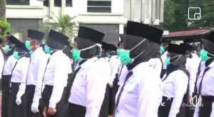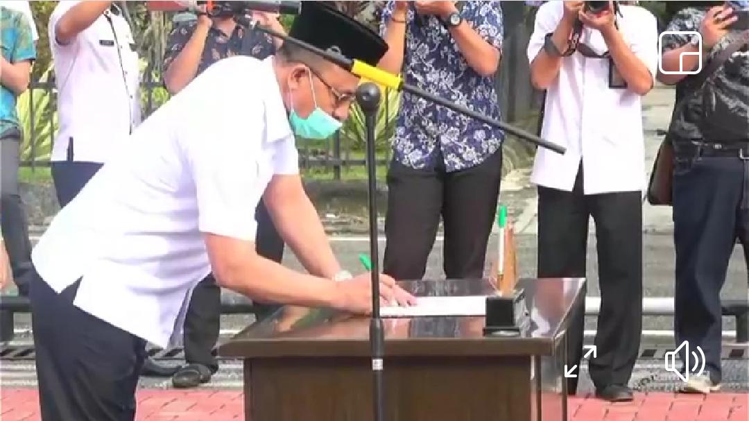Dengan Perjanjian Kerja (PPPK) Tahap 1 di Lingkungan Pemkab Muaea Enim Tahun Anggaran 2021, acara di pusatkan di Halaman Kantor Pemkab Muara Enim.