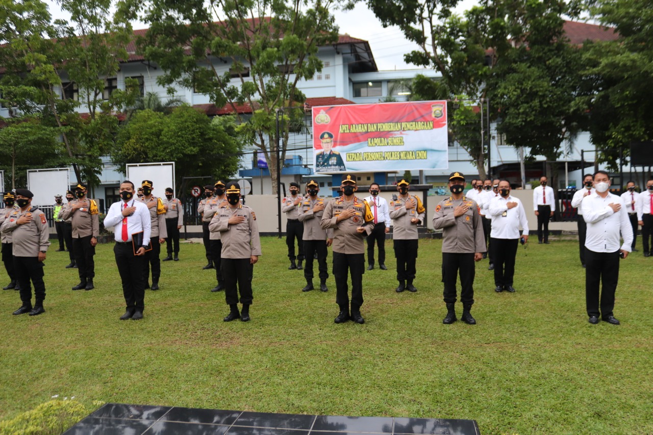 Sebanyak 24 Personel Polres Muara Enim yang berprestasi menerima Piagam penghargaan dari Kapolda Sumsel, Irjen. Pol. Prof. Dr. Eko Indra Heri, M.M.