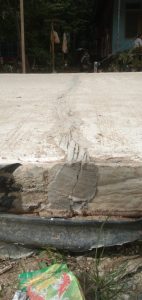 Menurut pantauan awak media di lokasi kegiatan , rigid beton yang bersumber dari biaya APBN dengan nama Program kota tanpa kumuh (KOTAKU) yang dikucurkan Pemerintah Pusat melalui KEMENTERIAN PEKERJAAN UMUM DAN PERUMAHAN RAKYAT DIREKTORAT JENDERAL CIPTA KARYA dengan anggaran dana Rp. 995.000.000 , yang dikerjakan secara swakelola , dikerjakan oleh KSM Harapan Baru sebagai pelaksana , di temukan lebih dari 5 titik keretakan selebar badan jalan di sepanjang hampir 600 meter bangunan jalan tersebut .