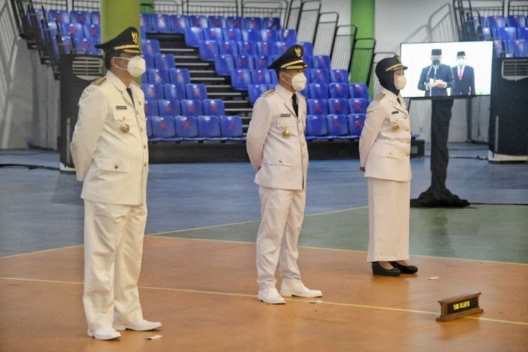 Kalubernews.net Jabar  – Gubernur Jawa Barat Ridwan Kamil melantik tiga penjabat pimpinan daerah di Youth Center Arcamanik, Kota Bandung, Rabu (10/2/2021).