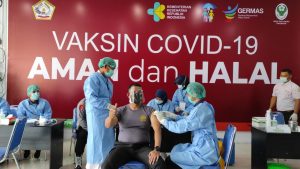 Divaksin yang pertama kali agar sehat dan masyarakat jangan menjadi ragu apalagi takut utk di Vaksin Covid 19 Vaksin Covid Aman dan Halal dan sudah mendapat Jaminan dari Pemerintah .Kegiatan berjalan aman terkendali . ( Dokumentasi )