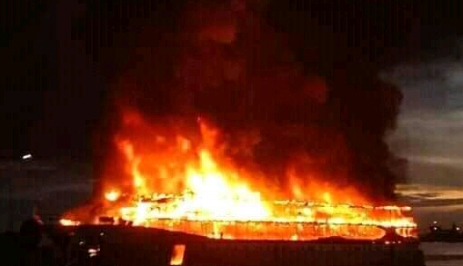 kapal fajar baru, terbakar saat bersandar di pelabuhan rakyat, pada Minggu 7/3/2021 pukul 18:00. Belum diketahui penyebab terjadinya kebakaran.