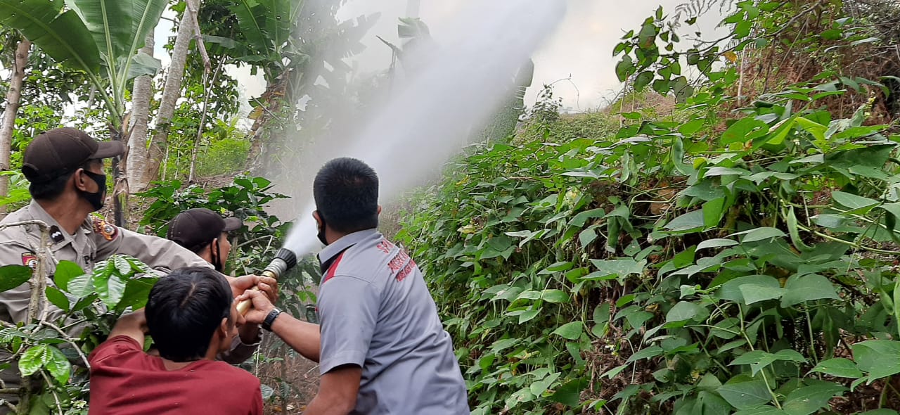 Babinsa dan babinkamtibmas bersama masyarakat dibantu satu unit mobil pemadam melakukan pemadaman api. Pada pukul 18.00 Wib api dapat dipadamkan.