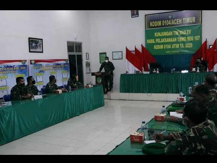 TMMD Reguler Ke-107 tahun anggaran 2020 Kodim 0104/Aceh Timur digelar di Kecamatan Peudawa, Kabupaten Aceh Timur,” urai Dandim saat paparan kepada Tim Wasev.