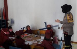 Diharapkan para siswa setelah selesai kegiatan belajar mengajar langsung pulang ke rumah, demi keselamatan dan kesehatan bersama. Harap Bhabinkamtibmas Briptu Nia Sri Kusnindar.