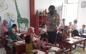 Kalibernews.net -Majalengka, Bhabinkamtibmas Polsek Sukahaji Polres Majalengka Briptu Nia Sri Kusnindar menyambangi TK Galura Winaya Desa Palabuan Kecmatan Sukahaji Kabupaten Majalengka, untuk memantau pembelajaran tatap muka di sekolah setempat, Selasa (7/9/2021).