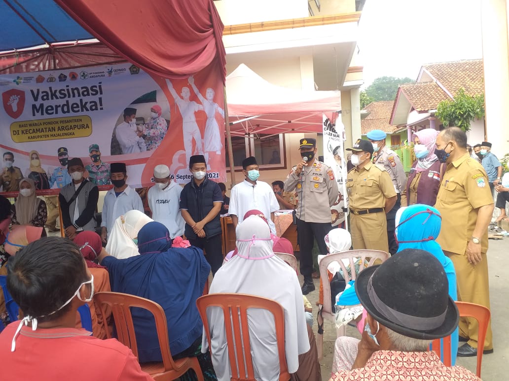 Kalibernews.net,-Majalengka,- Kepolisian Sektor (Polsek) Argapura, Polres Majalengka Polda Jawa Barat memantau pelaksanaan vaksinasi Untuk Pondok Pesantren (Ponpes) dan masyarakat di wilayah hukumnya.