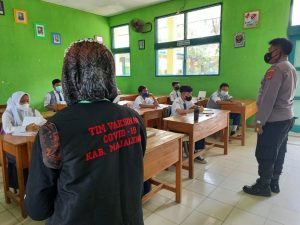 Kegiatan penyuntikan vaksin akan dilakukan secara bertahap, dan siswa yang sudah divaksin sudah 35 persen dari keseluruhan siswa, selama proses belajar dan mengajar serta aktivitas dilingkungan sekolah, semua siswa maupun guru tertib dan patuh Prokes Covid 19 yaitu mengenakan masker. Tukas Kapolsek IPTU Budi Wardana.