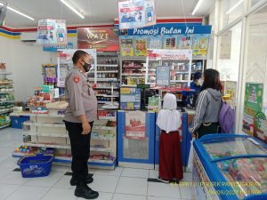 Kalibernews.net.Majalengka,- Bhabinkamtibmas Polsek Panyingkiran Polres Majalengka, pastikan disiplin Protokol Kesehatan di Mini Market Indomaret dengan menyambangi dan memberikan mengingatkan kembali himbauan dan edukasi protokol kesehatan kepada pelayan untuk selalu menerapkan 5 M Protokol Kesehatan. Selasa (7/9/2021).