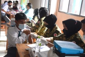 Kalibernews.news.-Bandung,- Kodam III/Siliwangi Genjot Serbuan Vaksin dengan tema “Serbuan Vaksin Siliwangi Silih Lindungi” di SMA PGRI 31 Pangalengan Kabupaten Bandung, Jawa Barat, Selasa (7/9/2021).