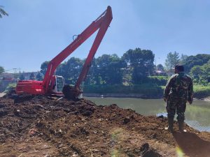 Kab. Bandung,- Sektor 7 Satgas Citarum melakukan aksi pengerukan sedimentasi Sungai Citarum didekat Jembatan Cilampeni Kampung Bojongbuah Desa Pangauban Kecamatan Katapang dan Kampung Bojongsayang Desa Rancamanyar Kecamatan Baleendah Kabupaten Bandung, Rabu (8/9/2021)