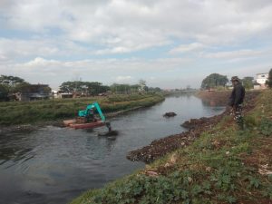 Ada 3 alat berat (excavator) dikerahkan untuk mengeruk endapan tanah dari Sungai Citarum dan sejumlah dump truck digunakan sebagai pengangkut tanah yang sudah dikeruk dari sungai. Kegiatan ini dilaksanakan sebagai tindak lanjut dari program Citarum Harum dimana permukaan sungai sudah mulai dangkal kembali. Hal ini bertepatan saat ini sedang musim kemarau, sehingga Sungai Citarum dilakukan pengerukan kembali dan alat berat (excavator) yang menggunakan ponton sangat sulit untuk bermanuver di air sungai karena dangkal.