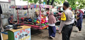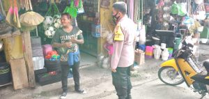 Kalibernews,-Majalengka,- Bhabinkamtibmas Polsek Cigasong Polres Majalengka Bripka Agus Rohman melaksanakan patroli sekaligus memberikan imbauan protokol kesehatan terkait pandemi COVID-19 di pasar Cigasong Kabupaten Majalengka, Rabu (8/9/2021).