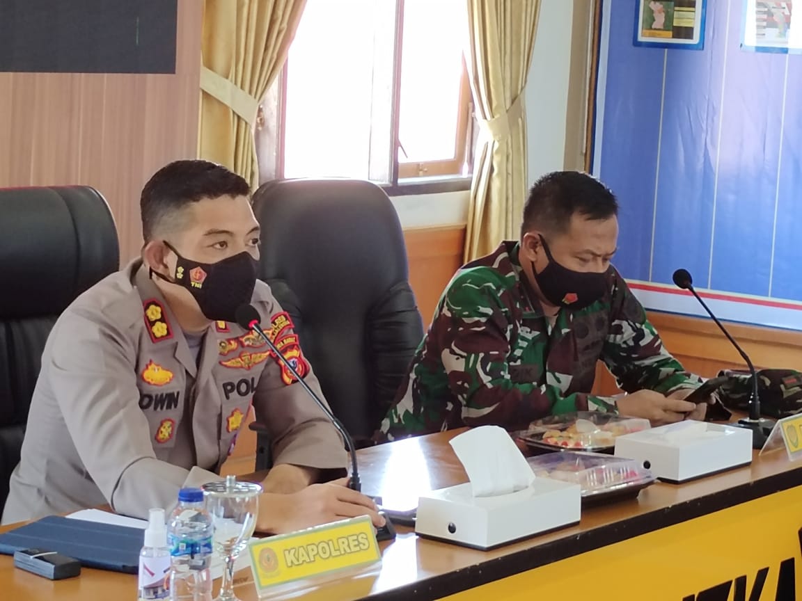 Majalengka, Kapolres Majalengka AKBP Edwin Affandi didampingi Dandim 0617/Majalengka Letkol Inf.Andik Siswanto Pimpin Rapat Kordinasi (Rakor) tentang Penerapan Aplikasi Peduli Lindungi di Mall Restoran, Hotel, Tempat Wisata dan Perkantoran, bertempat di Aula Sindangkasih Polres Majalengka, Kamis (9/9/2021).