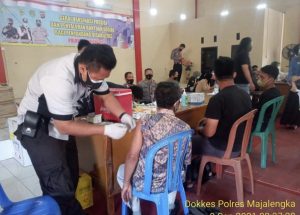 kalibernews,-Majalengka,- Program Vaksinasi Massal Covid-19 terus dilakukan jajaran Polres Majalengka. Pada Jumat (10/9/2021) vaksinasi digelar di Polres Majalengka dan Polsek Jajaran.
