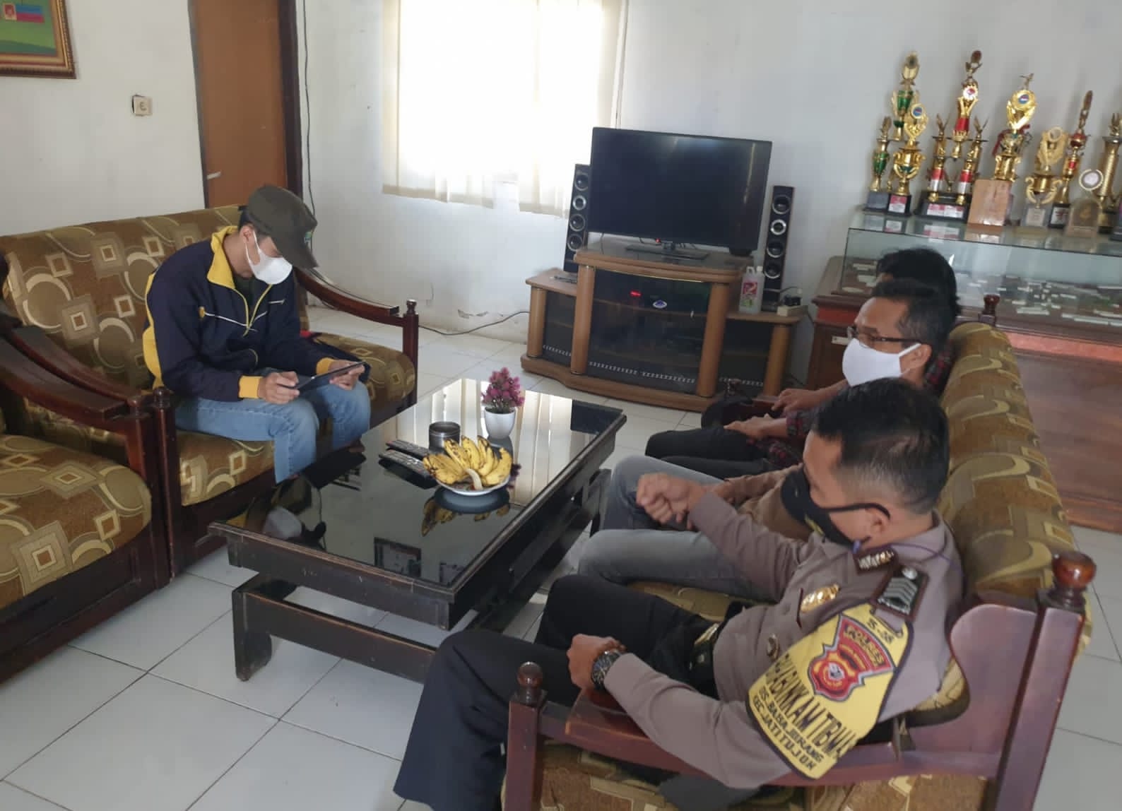 Bhabinkamtibmas dalam hal ini melakukan sosialisasi 5M atau Menggunakan Masker, Mencuci Tangan, Menjaga Jarak, Menjauhi Kerumunan dan Mengurangi Mobilitas dengan penerapan protokol kesehatan di masa pandemi covid-19 kepada perangkat Desa Pilangsari disekitar lingkungannya,” kata Kapolres Majalengka AKBP Edwin Affandi melalui Kapolsek Jatitujuh IPTU Kenedy Joko Lelono.