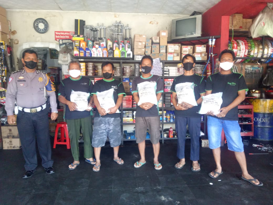 Kapolres Majalengka AKBP Edwin Affandi melalui Kasat Lantas AKP Lucky Martono menuturkan, pembagian bansos sebanyak 10 paket beras hari ini disalurkan ke buruh bengkel motor yang dinilai terdampak pandemi Covid-19 dalam upaya membantu perekonomian masyarakat ditengah penurunan penghasilan dan pendapatan saat ini.