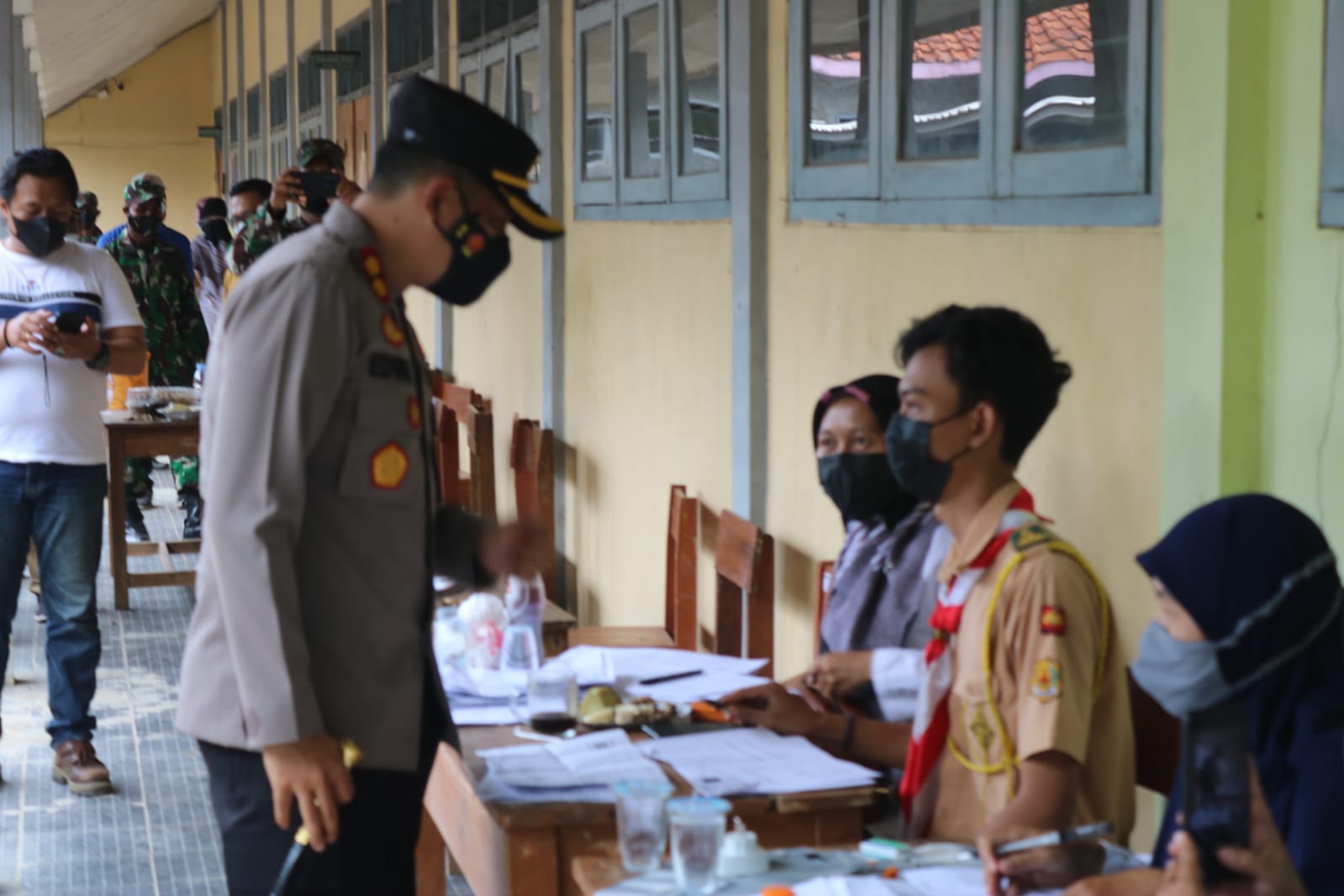 Kalibernews,-Majalengka, Kapolres Majalengka Akbp Edwin Affandi beserta anggota lainnya, melaksanakan monitoring pelaksanaan vaksinasi covid-19 kepada para siswa – siswi SMK Tridaya Budi kecamatan kasokandel kabupaten majalengka.senin, (13/9/21 ).
