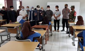 Kalibernews,-Majalengka, Kapolsek Lemahsugih Polres Majalengka IPTU Yuyun Rusyanto mendampingi Bupati Majalengka Dr.H.Karna Sobahi memantau pembelajaran tatap muka terbatas Sekaligus penyerahan sembako ke MUI Wilayah Kecamatan Lemahsugih. Senin (13/9/2021).