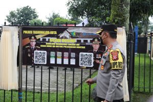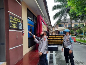 Sebelum masuk ke Mapolres, seluruh pengunjung wajib memindai Barcode atau QR Code Aplikasi Peduli Lindungi di Penjagaan Utama guna Mencegah Penyebaran Covid-19 serta meningkatkan kesadaran masyarakat untuk mengikuti Vaksinasi.