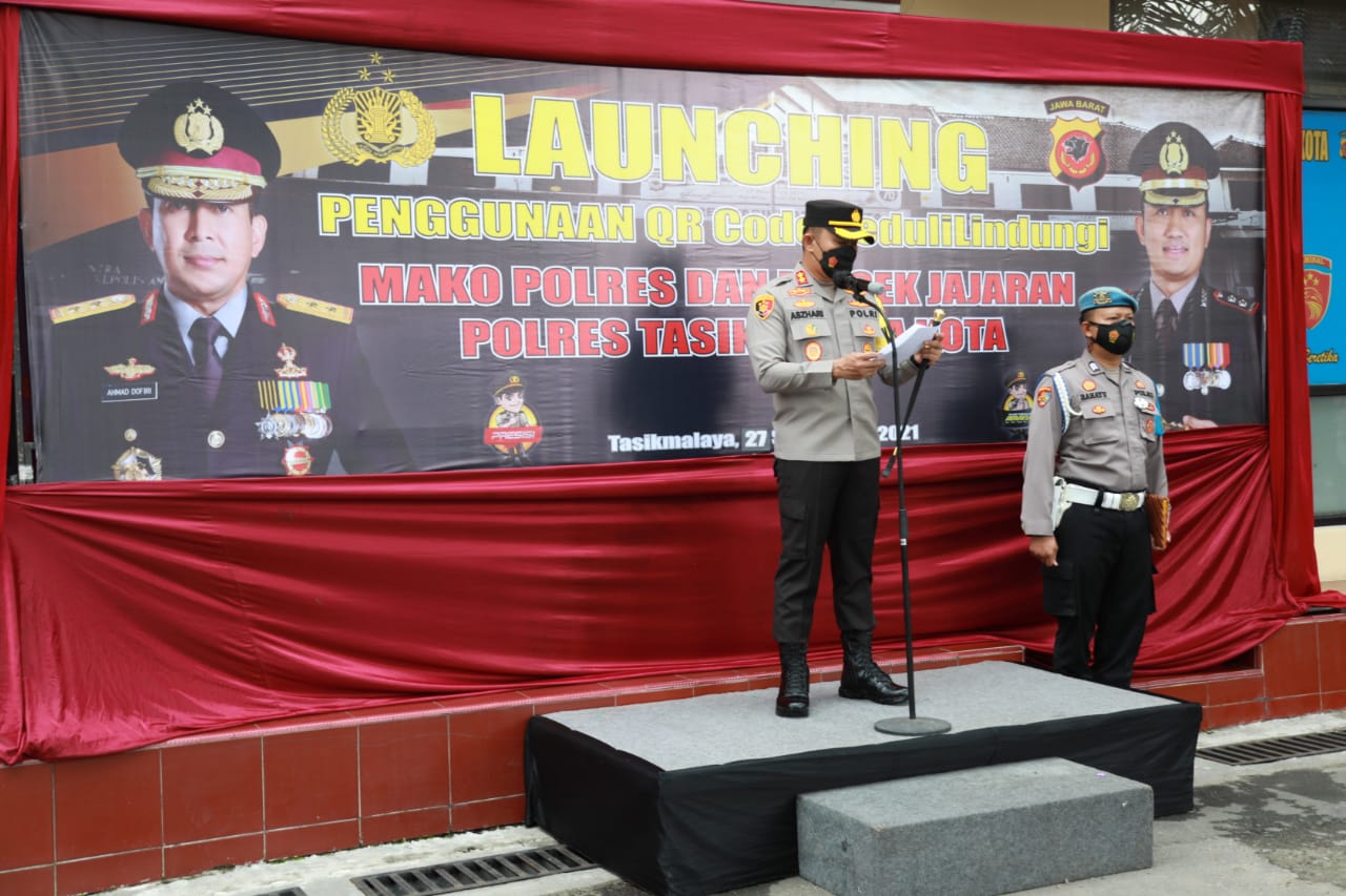 Kalibernews,_Kota Tasik,- Mapolresta- Polres Tasikmalaya Kota luncurkan Barcode Aplikasi Peduli Lindungi berlaku di Mapolres dan Seluruh Polsek Jajaran, Senin (27/09/21).