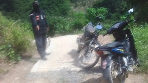 Dalam perjalanan menuju pekerjaan yang sudah di kerjakan,selain dari kepala desa bersama anaknya yang mengantar ada juga di dusun tempat pekerjaan rabat jalan di dusun 2 ada juga dari Kasi pemerintahan desa bambasiang Bp Aslin.