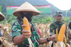 Kalibernews,-Sumedang-Kodim 0610/Sumedang melakukan panen jagung hibrida di lahan demplot seluas 1 hektar milik Kodim 0610/Sumedang, yang merupakan kegiatan pembinaan ketahanan pangan Kodim 0610/Sumedang dengan tema”mewujudkan binter yang adaptif melalui pembinaan ketahanan pangan diwilayah pada masa pandemi covid-19″ di Blok Pasir peusing Desa Naluk Kecamatan Cimalaka,Jum’at (24/12/2021).