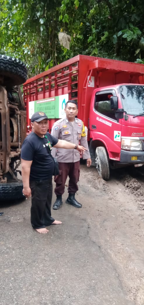 Terbaliknya mobil muatan berat ini dikarenakan jalan yang begitu sempit sehingga mobil tersebut kehilangan kendali,,dan pada saat itu juga pihak dari Kepolisian yang bertugas di desa labonu Bhabinkamtibmas Bripka Arham bersama masyarakat dan pengendara yang melintas , turut bekerjasama dalam mengatur jalur lalulintas..