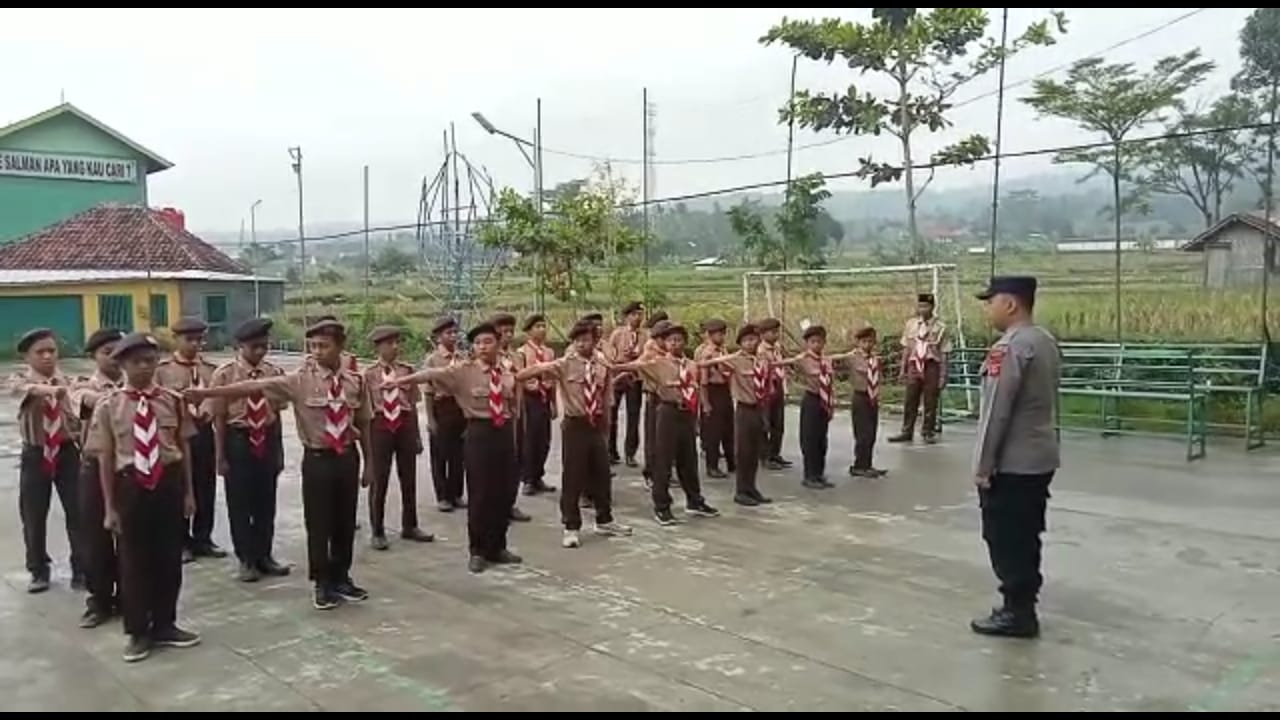 Dengan penuh semangat, Kanit Samapta Polsek Dukupuntang Ipda H. Supardi bersama Kanit Binmas Polsek Dukupuntang Aipda Totong Sunarta, S.H melatih gerakan baris berbaris kepada anak anak Pramuka SMP IT Pondok Pesantren Sains Salman Assalam.