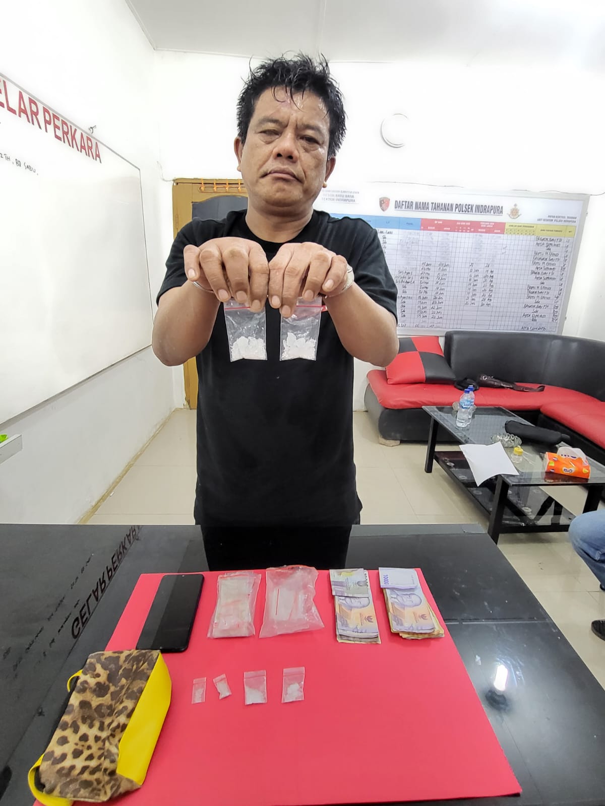 Tersangka an. Dedy Sapriadi Alias.Dedy Turjek , alias juragan, Lk , Islam, (52), Pekerjaan Tidak Tetap, alamat Jln. Syahrifuddin Link.II Kel. Indrapura Kota Kec. Air putih Kab. Batu Bara, berhasil di tangkap di Link. II Kel. Indrapura Kec. Air Putih Kab. Batu Bara.