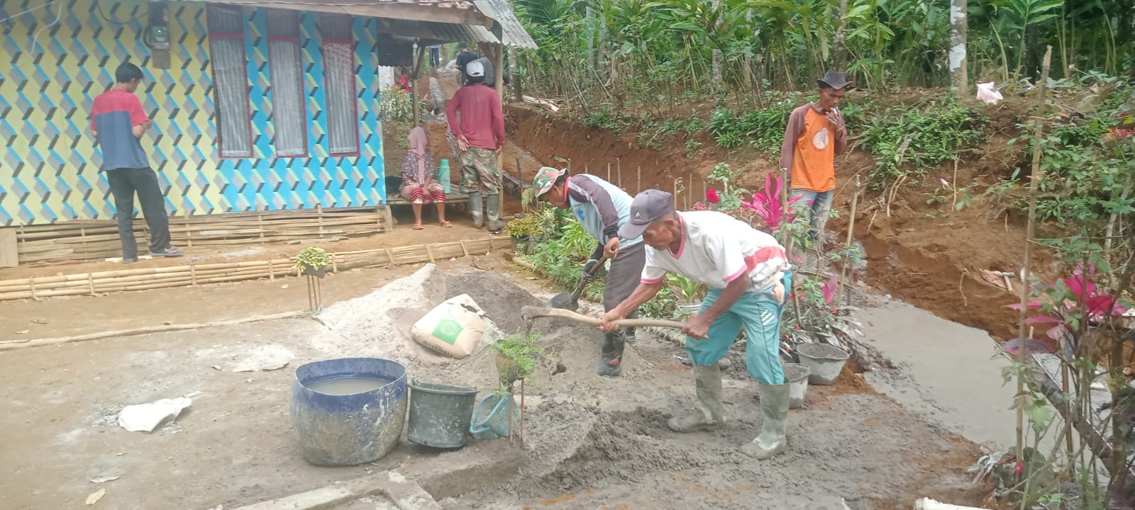 Selain pembangunan bahu jalannya, ada juga pembangunan Tebing Penahan Tanah ( TPT ) di lokasi tersebut, seluruh pengerjaan di kerjakan Oleh TPKD Desa Wangunjaya Kecamatan Banjarwangi.