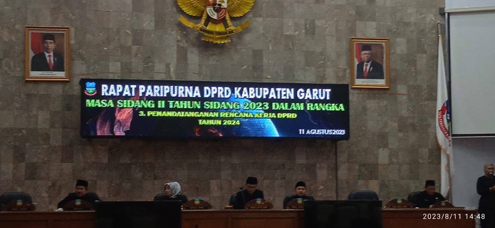 Bupati Garut, Rudy Gunawan, hadir dalam Rapat Paripurna DPRD Masa Sidang II Tahun Sidang 2023 di Ruang Rapat Paripurna DPRD Garut, Jum’at (11/8/2023). Rapat membahas sejumlah isu, termasuk Penandatanganan Nota Kesepakatan Perubahan Kebijakan Umum APBD 2023 dan 2024, serta Perubahan Prioritas dan Plafon Anggaran Sementara (PPAS) APBD 2023 dan 2024.