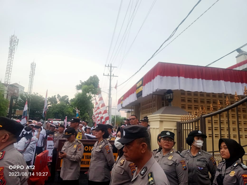Medan-Ratusan massa yang terdiri dari Aliansi Masyarakat Sumatera Utara dan Horas Bangso Batak (HBB) menggelar aksi damai di depan Mapolretastabes Medan, Jalan HM Said Medan, Kecamatan Medan Perjuangan, Kota Medan, pada Senin pagi (14/08/2023) sekira pukul 10.00 WIB hingga pukul 12.00 WIB siang s/d selesai. Mereka meminta Polisi agar  menangkap BS yang di duga telah menyebarkan berita bohong, menimbulkan keonaran dan keresahan di tengah-tengah masyarakat. Terlebih di tengah-tengah Aliansi Masyarakat Sumatera Utara dan Anggota Horas Bangso Batak (HBB). Sebelumnya, Horas Bangso Batak (HBB) sudah melaporkan BS ke Polrestabes Medan dengan Nomor : LP/B/2602/VIII/2023/SPKT/Polrestabes Medan/Polda Sumatera Utara dan LP/B/2510/VII/2023/SPKT/Polrestabes Medan. Hampir 1 Jam berorasi, perwakilan pendemo di terima petugas ke dalam Mapolrestabes. Hasil pertemuan dengan penyidik, BS akan di periksa pada Selasa (15/08/2023) besok. “Dari hasil pertemuan kami di dalam, penyidik menyebutkan sudah memanggil BS dan akan di periksa besok,” kata Ketua Dewan Pimpinan Cabang Horas Bangso Batak (DPC – HBB) Kota Medan, Poltak Tampubolon sembari menambahkan dia meminta Polrestabes Medan agar serius menangani kasus ini.  Sementara itu Ketua Dewan Pimpinan Daerah Horas Bangso Batang (DPD – HBB) Provinsi Sumatera Utara, Thomson Parapat juga menegaskan BS harus di tahan untuk mempertanggung jawabkan perbuatannya.(Redaksi/Zulkarnain.Lubis) AKSI DAMAI : Ratusan massa yang terdiri dari Aliansi Masyarakat Sumatera Utara dan Horas Bangso Batak (HBB) menggelar aksi damai di depan Mapolretastabes Medan, Jalan HM Said Medan, Kecamatan Medan Perjuangan, Kota Medan, pada Senin (14/8/2023) pagi.(Foto/Redaksi/Zulkarnain.Lubis) Ratusan Massa Aliansi Masyarakat Sumut dan HBB Gelar Aksi Damai di Depan Polrestabes Medan. Medan-Ratusan massa yang terdiri dari Aliansi Masyarakat Sumatera Utara dan Horas Bangso Batak (HBB) menggelar aksi damai di depan Mapolretastabes Medan, Jalan HM Said Medan, Kecamatan Medan Perjuangan, Kota Medan, pada Senin pagi (14/08/2023) sekira pukul 10.00 WIB hingga pukul 12.00 WIB siang s/d selesai. Mereka meminta Polisi agar  menangkap BS yang di duga telah menyebarkan berita bohong, menimbulkan keonaran dan keresahan di tengah-tengah masyarakat. Terlebih di tengah-tengah Aliansi Masyarakat Sumatera Utara dan Anggota Horas Bangso Batak (HBB). Sebelumnya, Horas Bangso Batak (HBB) sudah melaporkan BS ke Polrestabes Medan dengan Nomor : LP/B/2602/VIII/2023/SPKT/Polrestabes Medan/Polda Sumatera Utara dan LP/B/2510/VII/2023/SPKT/Polrestabes Medan. Hampir 1 Jam berorasi, perwakilan pendemo di terima petugas ke dalam Mapolrestabes. Hasil pertemuan dengan penyidik, BS akan di periksa pada Selasa (15/08/2023) besok. “Dari hasil pertemuan kami di dalam, penyidik menyebutkan sudah memanggil BS dan akan di periksa besok,” kata Ketua Dewan Pimpinan Cabang Horas Bangso Batak (DPC – HBB) Kota Medan, Poltak Tampubolon sembari menambahkan dia meminta Polrestabes Medan agar serius menangani kasus ini.  Sementara itu Ketua Dewan Pimpinan Daerah Horas Bangso Batang (DPD – HBB) Provinsi Sumatera Utara, Thomson Parapat juga menegaskan BS harus di tahan untuk mempertanggung jawabkan perbuatannya.(Redaksi/Zulkarnain.Lubis) AKSI DAMAI : Ratusan massa yang terdiri dari Aliansi Masyarakat Sumatera Utara dan Horas Bangso Batak (HBB) menggelar aksi damai di depan Mapolretastabes Medan, Jalan HM Said Medan, Kecamatan Medan Perjuangan, Kota Medan, pada Senin (14/8/2023) pagi.(Foto/Redaksi/Zulkarnain.Lubis)