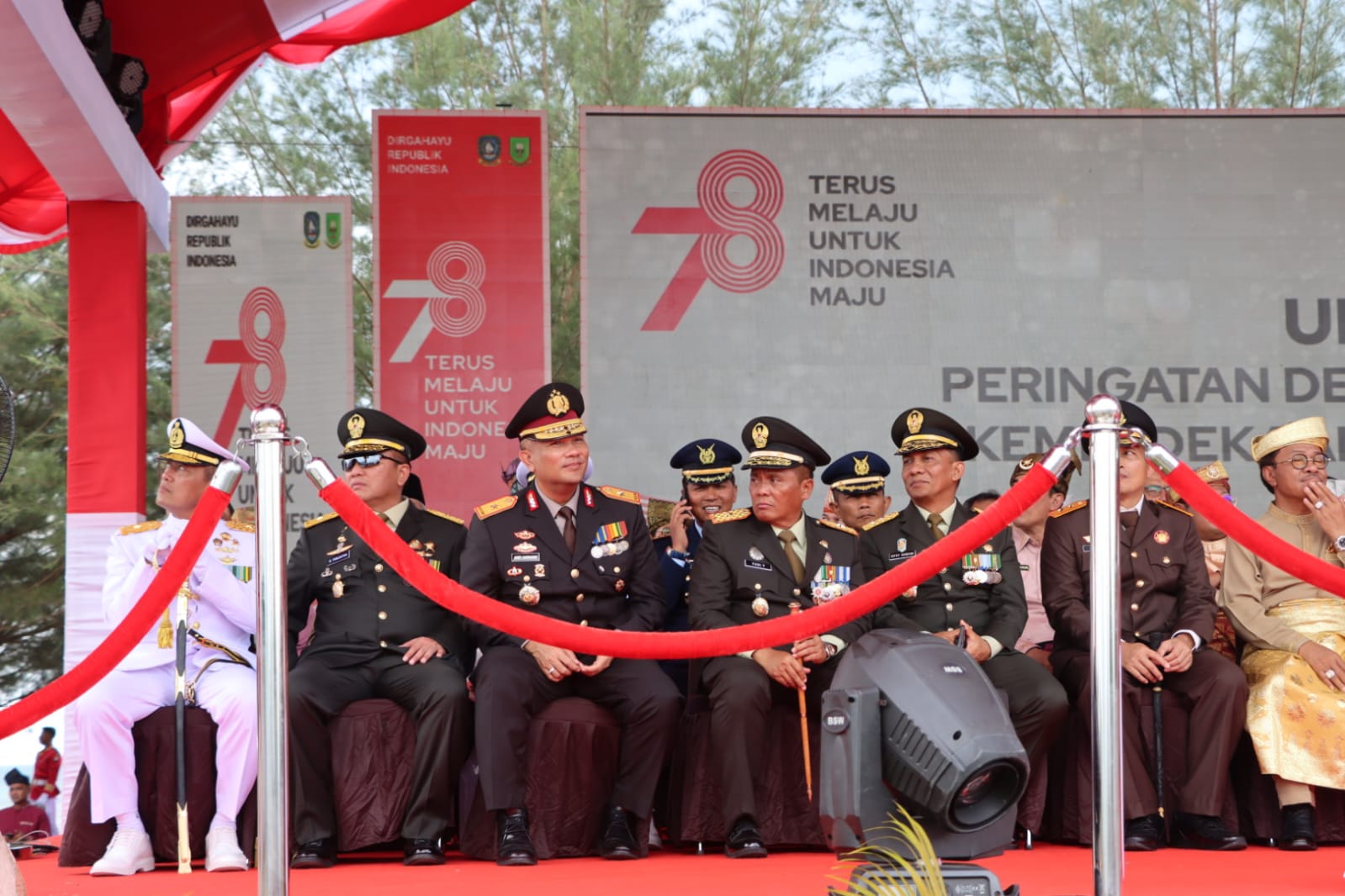 Upacara Hari Kemerdekaan RI Ke-78 ini di meriahkan dengan penampilan tarian dan atraksi drumband oleh SMA N 1 dan SMA N 2 dan di seputaran pantai piwang, masyarakat menyaksikan upacara dengan tertib dan hikmat. Untuk kelancaran kegiatan, Polres Natuna bersama TNI dan Instasi terkait terus gandeng tangan bersama membangun sinergitas memberikan pengamanan, pengawalan dan pengaturan arus lalulintas agar pelaksanaan Upacara berjalan dengan aman, nyaman dan lancar. (Siti)