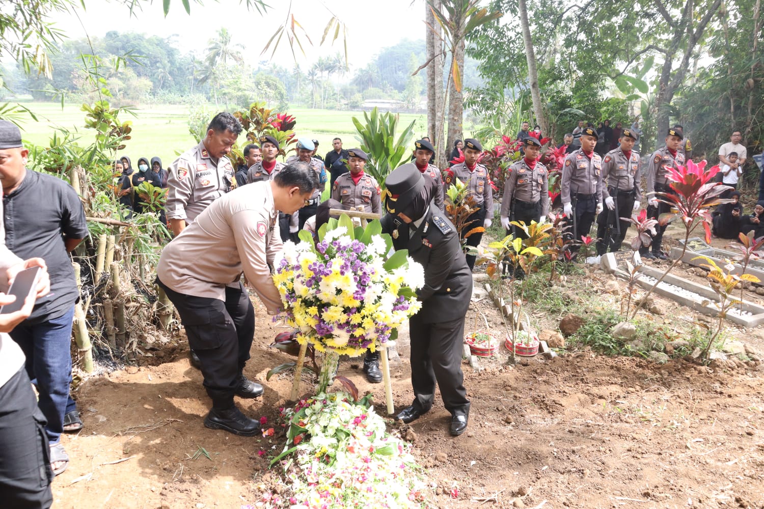 “Selesai disemayamkan di rumah duka, selanjutnya jenazah di berangkatkan untuk dikebumikan di TPU Cigantang, melalui prosesi pemakaman secara dinas Kepolisian.