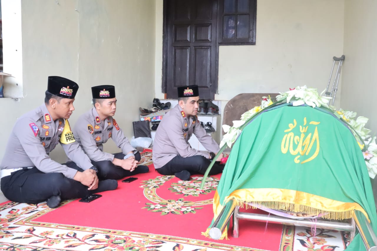 Didampingi Waka Polres Kompol Dhoni Erwanto dan PJU Polres Tasikmalaya Kota, Kapolres AKBP SY Zainal Arifin menyampaikan belasungkawa atas meninggalnya AIPTU Budi Hendrawan anggota Bhabinkamtibmas Kelurahan Argasari Polsek Cihideung