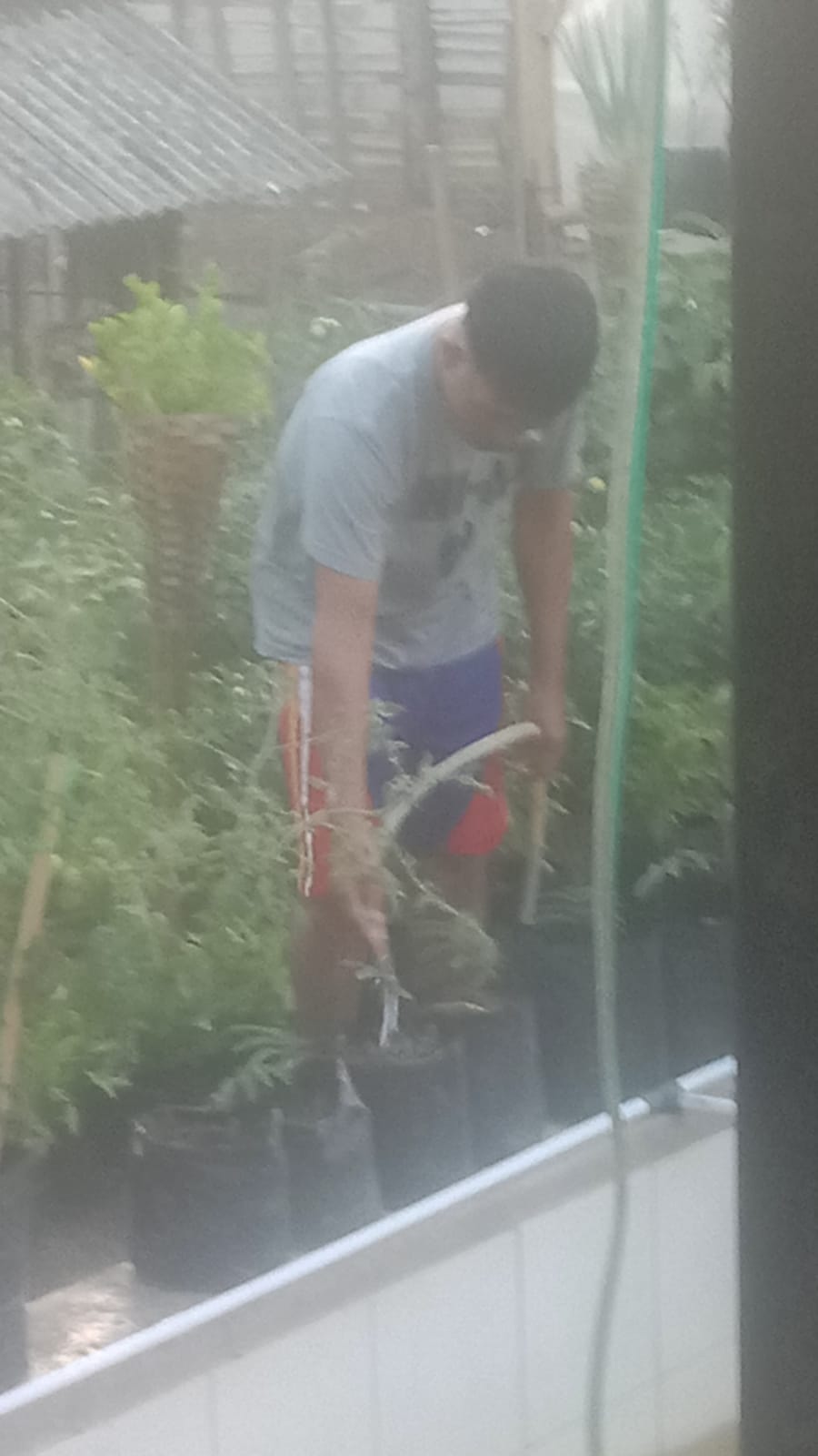 Setelah berbincang bincang melalui Panggilan suara Whatsapp, pribadi pak Kades Kemudian Minta ijin kepada Pak Sekdes untuk menyambangi Rumah kediaman pak Kades yang berdomisili di Kampung Bunisari RT 01 RW 09, sesampainya di rumah kediamannya, tampak Kepala Desa Mancagahar Kecamatan Pameungpeuk Endi sedang melakukan Aktivitas merawat dan menyita. tanaman sayur mayur yang berjejer di halaman depan rumahnya, seperti tanaman tomat, cabe rawit, Pakcoy dan masih banyak yang lainya