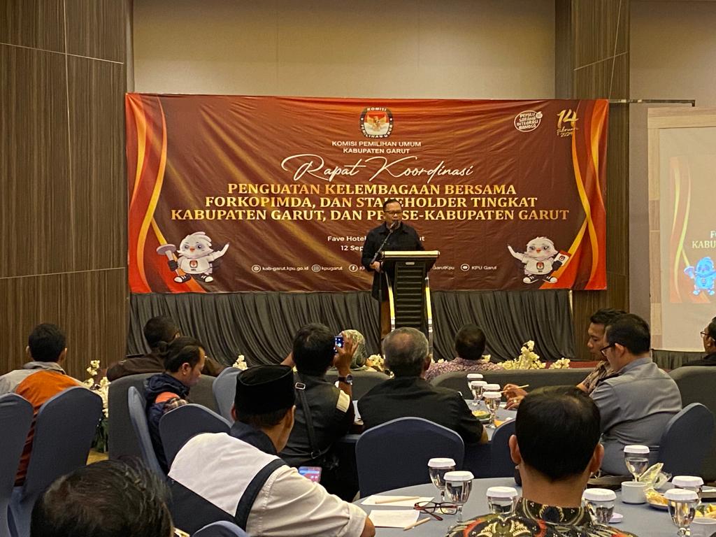 GARUT, Tarogong Kidul- Komisi Pemilihan Umum (KPU) Kabupaten Garut, Selasa (12/9/2023), menggelar Rapat Koordinasi Penguatan Kelembagaan bersama Forkopimda dan Stakeholder tingkat Kabupaten Garut serta Panitia Pemilihan Kecamatan (PPK) di Ballroom Kassiti Fave Hotel. Acara ini menjadi tonggak penting dalam persiapan pemilu di Kabupaten Garut.