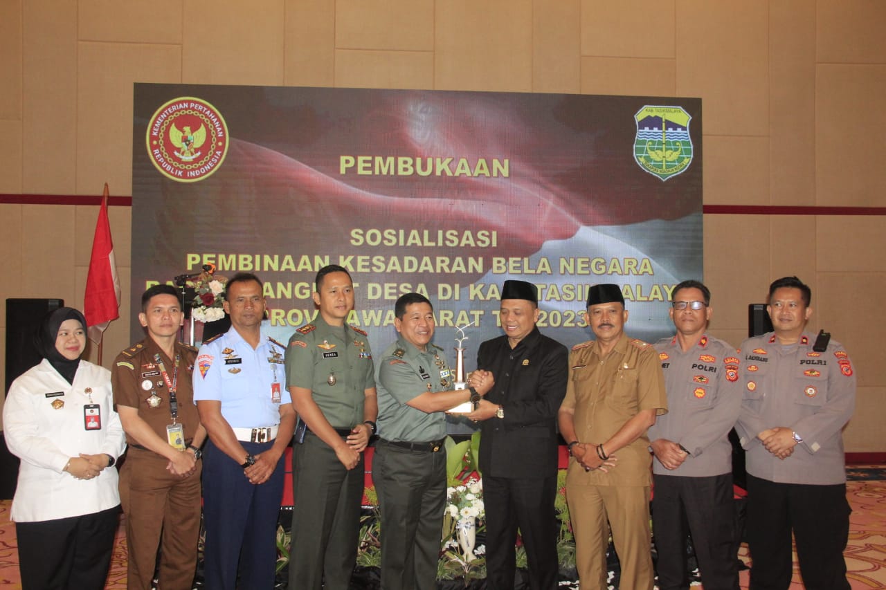 Danbrig R 13 / G/1/ Kostrad diwakili Kasi Intel Brigif R 13/G/1/Kostrad Mayor Inf. Brahma Patayasa, dan Peserta Sosialisasi Perangkat Desa Kabupaten Tasikmalaya