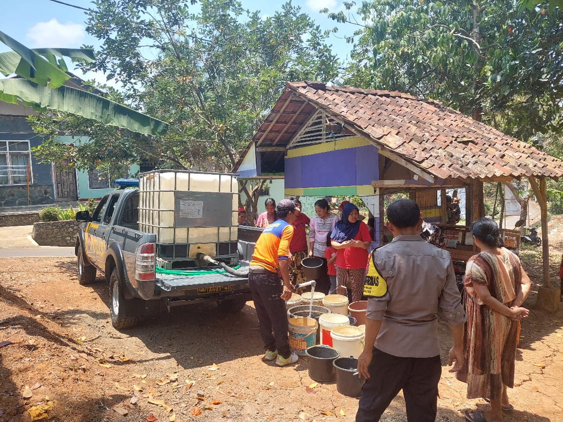 Polres Tasik Kota-Bakti sosial Polsek Manonjaya bersama RPB Manonjaya membagikan air bersih kepada warga di Kampung Rancapari Desa Cilangkap Kecamatan Manonjaya Kabupaten Tasikmalaya, Rabu (05/10/2023).
