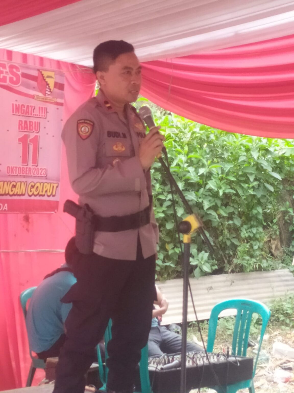 Memberikan sambutan serta arahan kepada warga masyarakat pemilih.