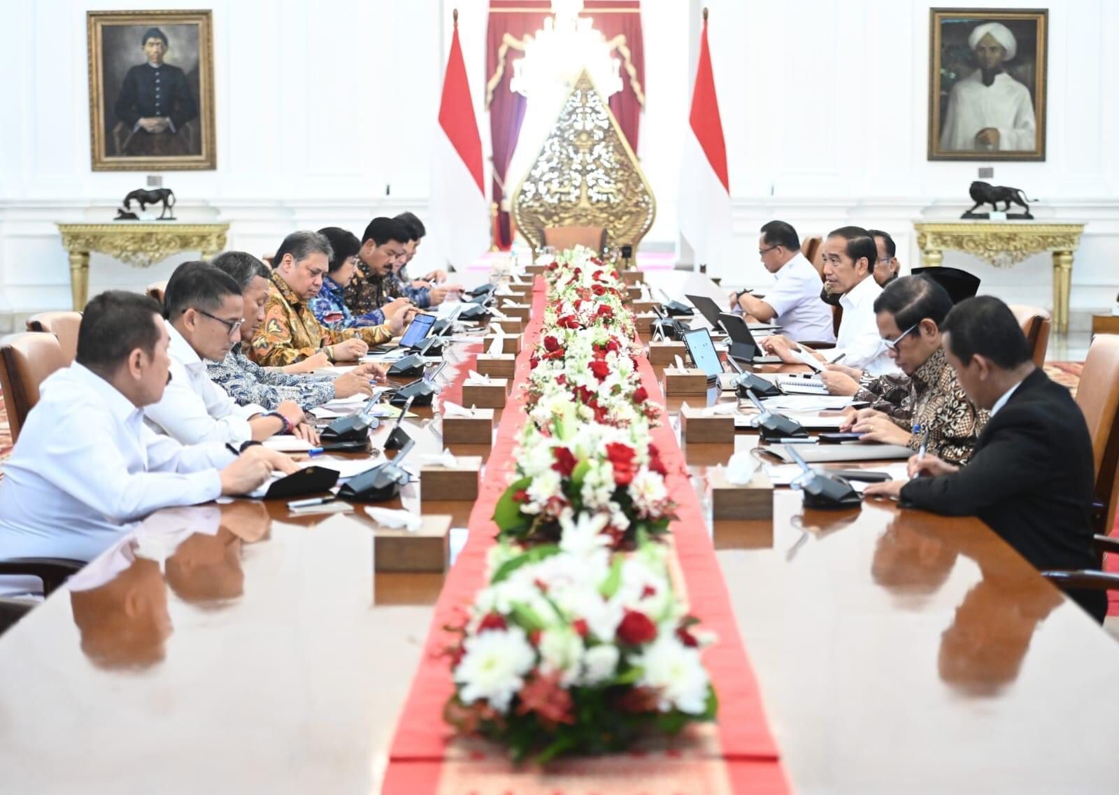 Presiden Joko Widodo memimpin rapat terbatas bersama jajarannya di Istana Merdeka, Jakarta, pada Kamis, 5 Oktober 2023 untuk membahas soal proyek strategis nasional (PSN). Menteri Koordinator Bidang Perekonomian Airlangga Hartarto menjelaskan bahwa dalam rapat tersebut para menteri melaporkan PSN yang telah selesai, belum diresmikan, hingga yang dihentikan.