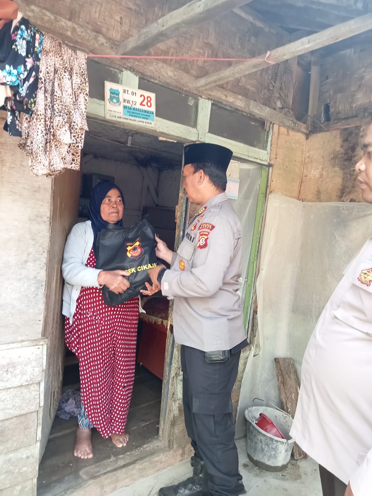 Garut,-Kaibernews.net -Kapolsek Cikajang Polres Garut AKP Adnan bersama dengan Bhabinkamtibmas berikan bantuan Sembako kepada warga yang membutuhkan. Jumat (6/10/2023).