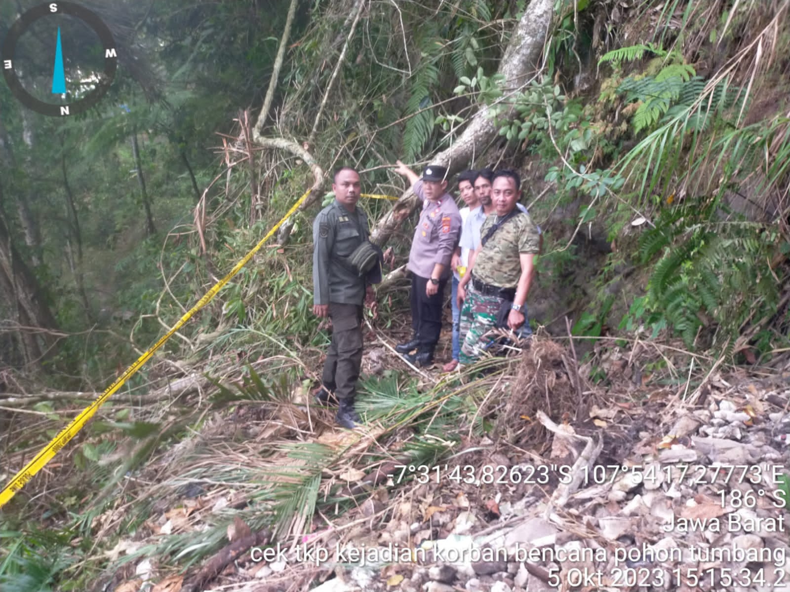 Garut,Kalibernews.net – Polsek Singajaya Polres Garut menerima informasi dari Camat Peundeuy perihal terjadinya masyarakat yang meninggal dunia tertimpa pohon tumbang di kawasan hutan lindung blok Cikolak RPH Cihurip petak 103 BKPH Cisompet. Rabu (04/10/2023).