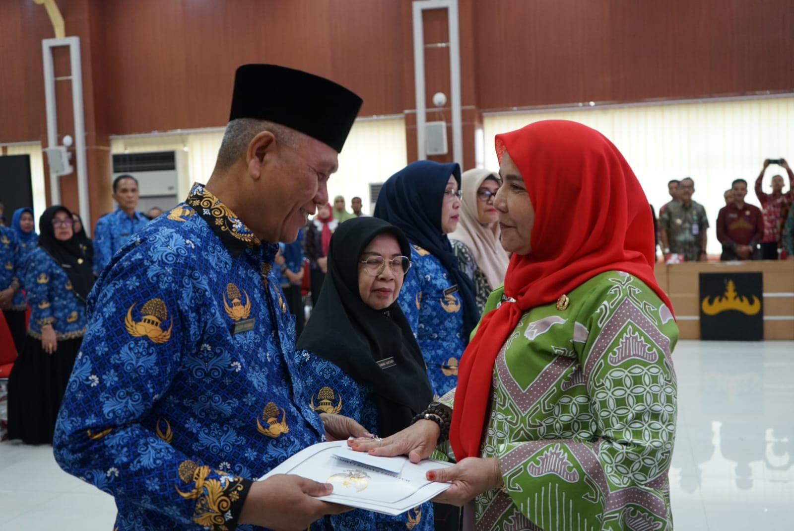 – Kota Bandar Lampung, Eva Dwiana, menyerahkan SK Wali Kota Bandar Lampung tentang Pemberhentian Pegawai Sipil Negara (PNS) yang memasuki usia pensiun per 1 November, 1 Desember 2023, 1 Januari 2024 dan meninggal dunia.