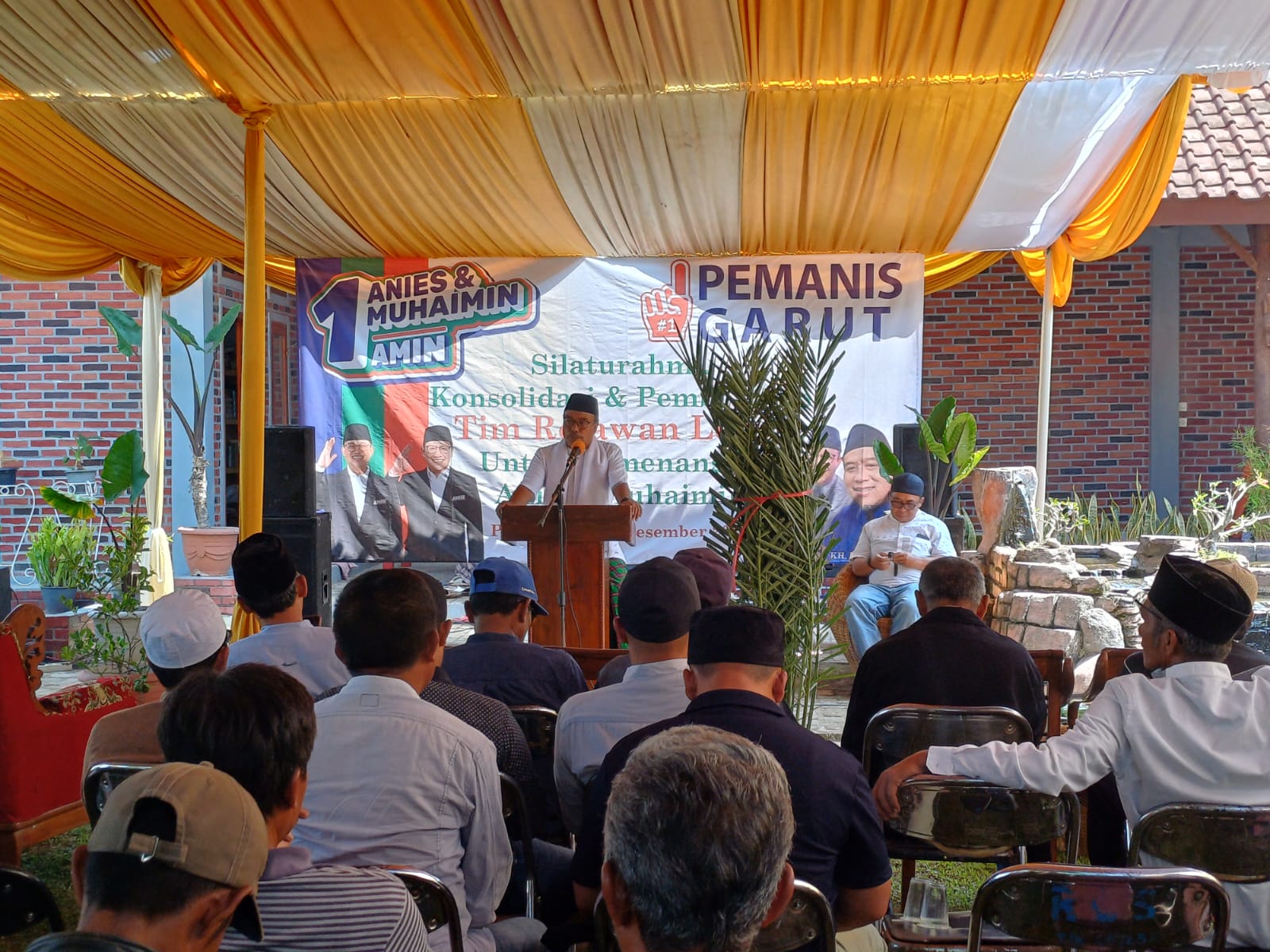 Tim relawan lokal (pemanis Garut) melakukan kegiatan silaturahmi, konsolidasi, dan pembekalan untuk pemenangan pasangan capres/cawapres nomor urut 1 Anies – Muhaimin, yang bertempat di villa komplek Perum Wanaraja Indah Desa Babakanloa Kec.Pangatikan Kab. Garut. Sabtu (16/12/2023).