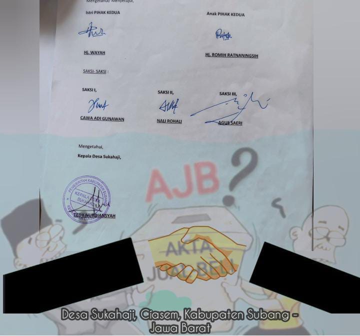 Usut punya usut, ternyata AJB tersebut tentunya diterbitkan oleh Desa Sukahaji, yangmana melibatkan beberapa pintu (PIC) yang menjualnya kepada pihak lain, PADAHAL, jelas hak kuasa jual dipegang oleh guru Age sendiri.