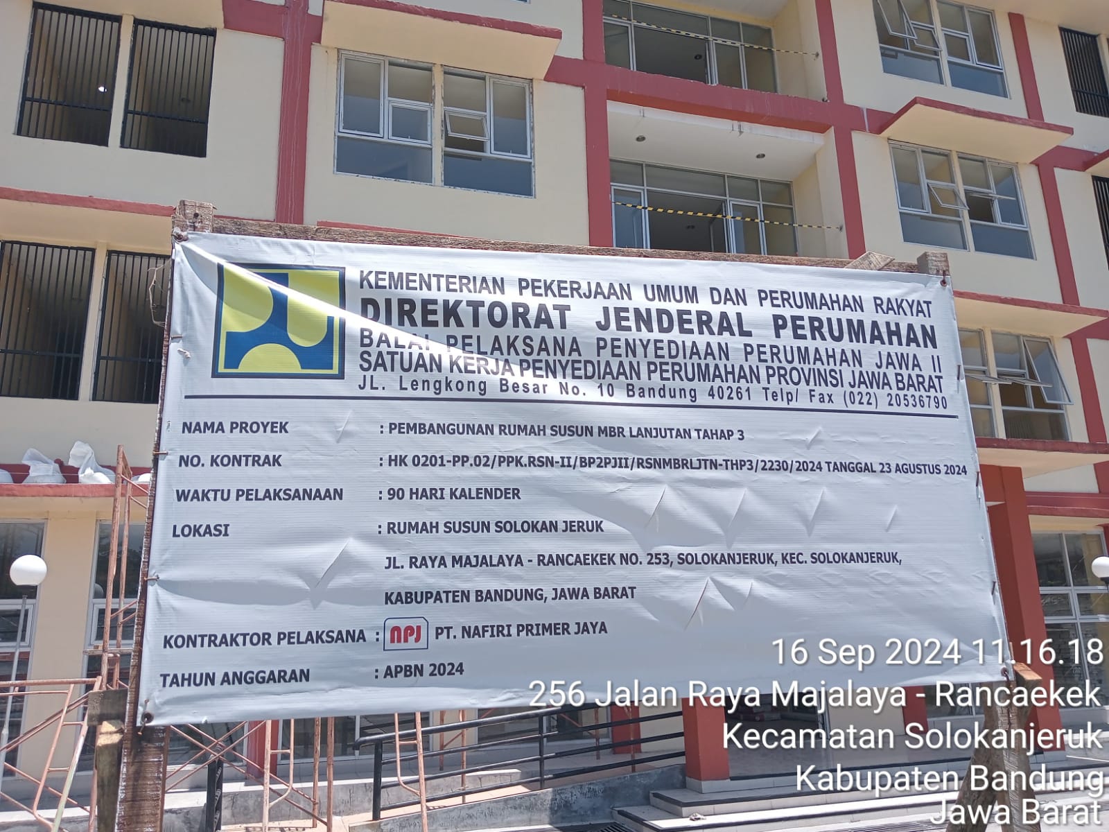 Soreang,-Kalibernews.net,-// Kamis 13/9/2024 lalu sekira, Pukul 9.00 tim media Kalibernews.net Menyambangi Lokasi Proyek Pembangunan Rumah susun MBR Lanjutan Tahap 3 Yang berlokasi Di Jln Raya Majalaya – Rancaekek No 253 , Desa Solokan jeruk , kecamatan Solokan jeruk Kabupaten Bandung Jawa barat.