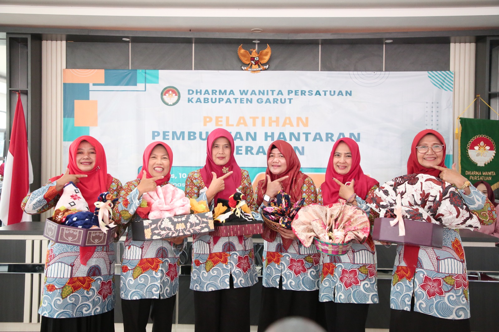**GARUT,-Kalibernews.net.-//-* – Dharma Wanita Persatuan (DWP) Kabupaten Garut menggelar Pelatihan Pembuatan Hantaran Seserahan, yang dilaksanakan secara hybrid di Aula Dinas Sosial Kabupaten Garut, Jalan Patriot, Kecamatan Tarogong Kidul, Kabupaten Garut, Kamis (10/7/2025).